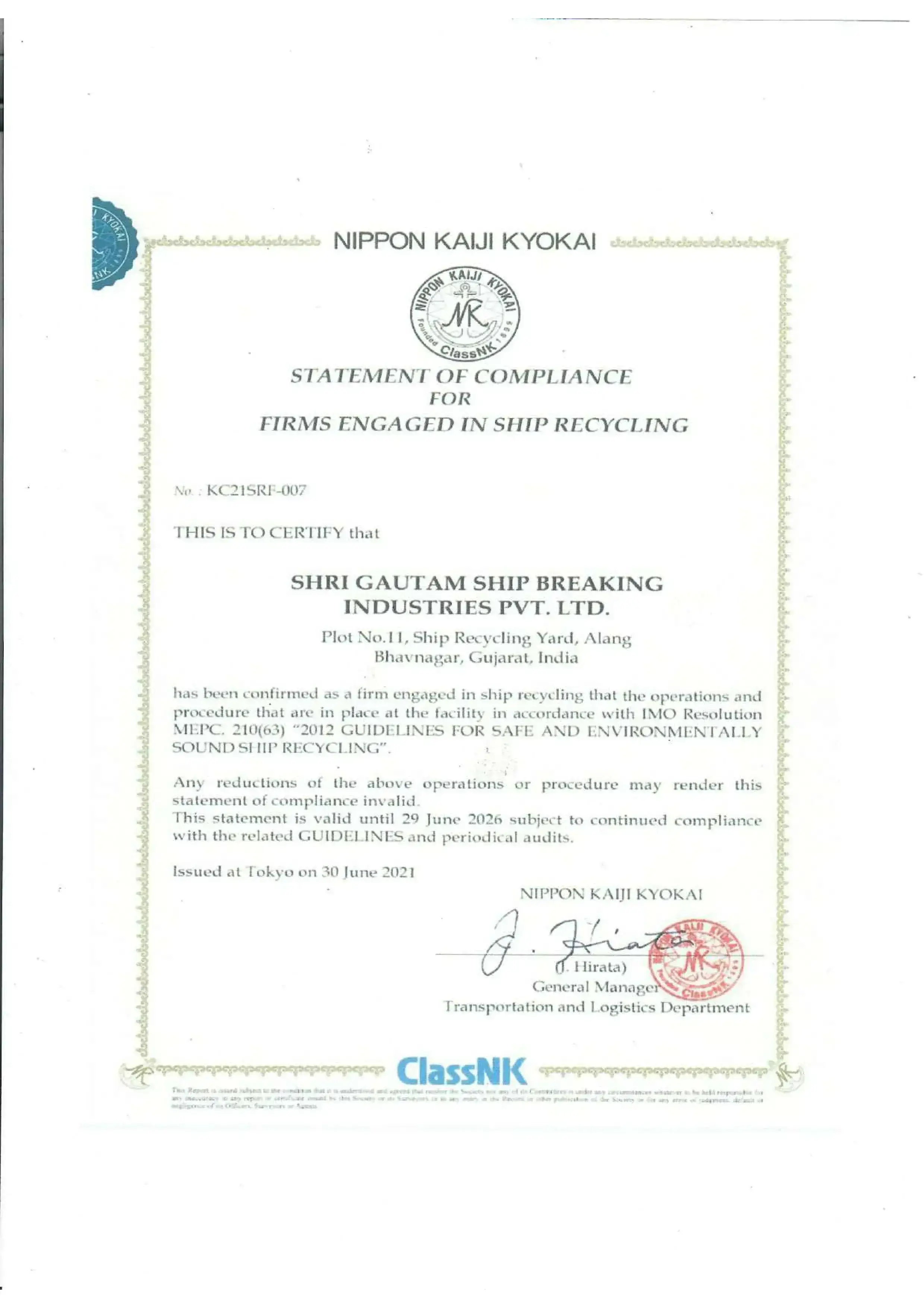 Statement of Compliance