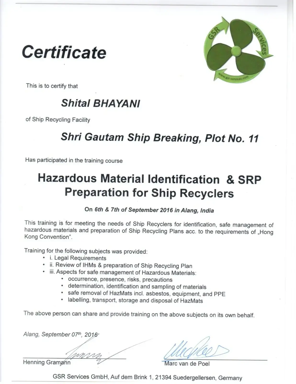 Certificate of Training